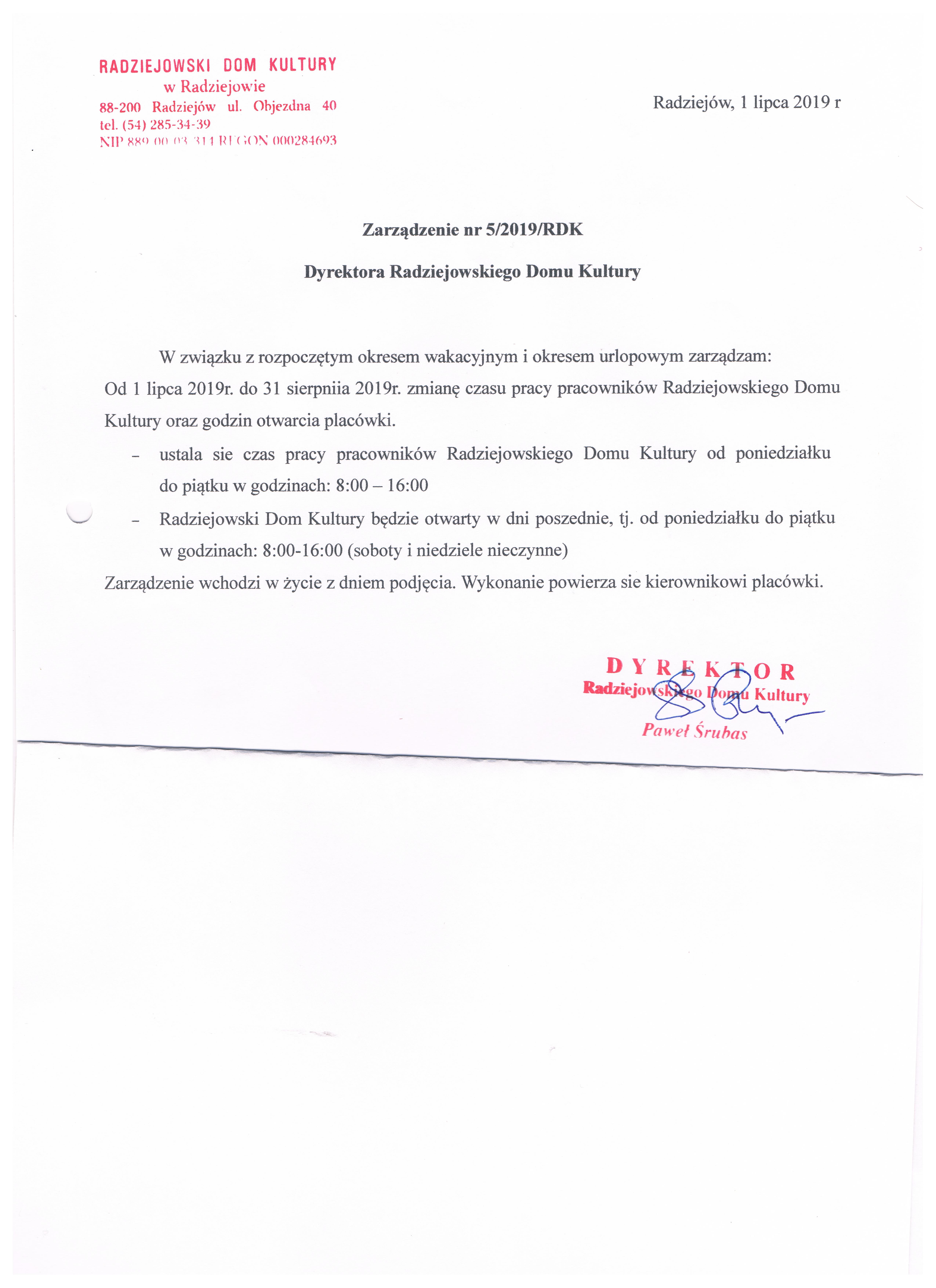 Zarz膮dzenie nr 5/2019